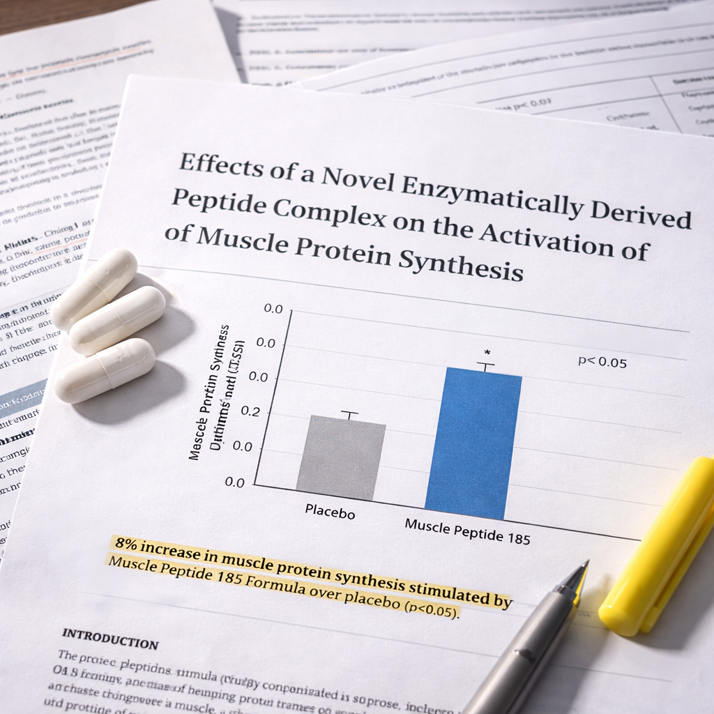 Muscle Peptide 185 Formula is made with a leucine-based peptide studied for its role in supporting muscle protein synthesis.